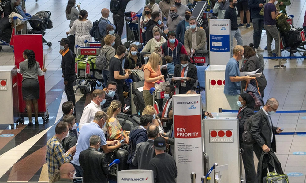 Hành khách chờ lên máy bay tại sân bay ở Johannesburg, Nam Phi. Ảnh: AP