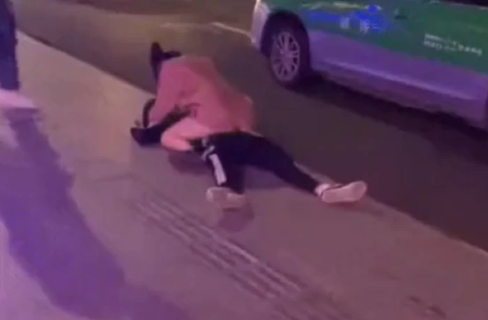 Về phía chàng trai, anh ta nằm im bất động trên lề đường, không hề có phản ứng gì khi bạn gái làm như vậy. Mãi một lúc lâu sau, cặp đôi mới đứng dậy rời đi nhờ sự giúp đỡ của người khác.