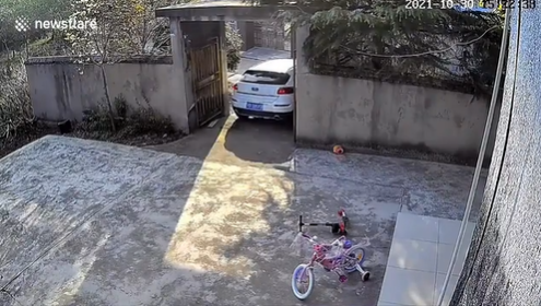 Cô con dâu dường như là "tài mới", nên việc lùi xe vào sân nhà qua cánh cổng hẹp gặp nhiều khó khăn.