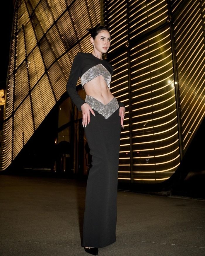 Mới đây cô gây náo loạn MXH với bộ ảnh mặc đồ xuyên thấu bằng cách "lăng xê" nhiệt tình thiết kế "nửa kín nửa hở" quyến rũ tột độ. Đây là mẫu đầm xuyên thấu có đính đá nhỏ nhắn và họa tiết sang chảnh.