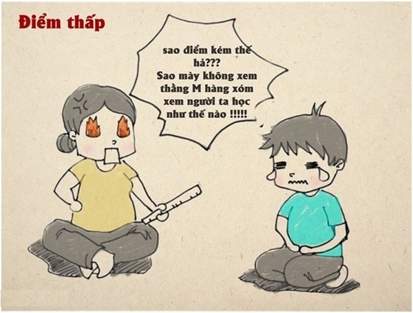 - Tí: Ước gì khi xem xong phiếu điểm con không bị bố đánh!