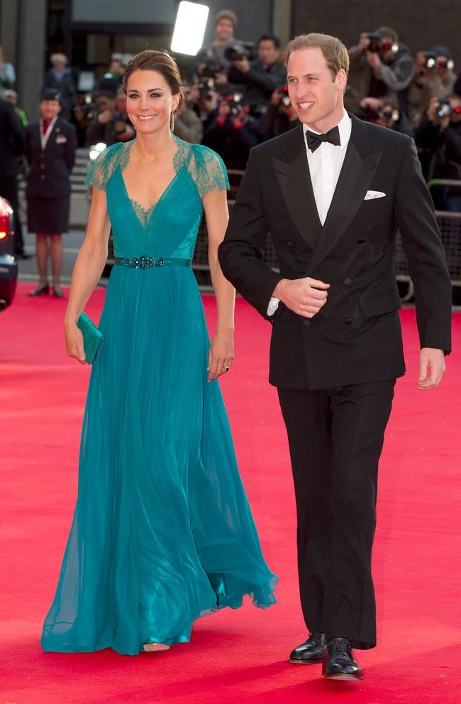 Chiếc đầm lệch vai đem lại sự quyến rũ, nhưng cũng đầy tinh khôi, bay bổng cho diện mạo của Kate Middleton.
