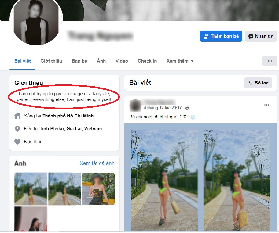 Bên cạnh đó, tài khoản Facebook này còn thường đăng tải những hình ảnh xinh đẹp, khoe body sexy và cuộc sống sang chảnh. Các bài đăng, hình ảnh này hiện đều nhận hàng nghìn lượt phẫn nộ cùng với rất nhiều bình luận, chỉ trích thậm tệ từ cộng đồng mạng