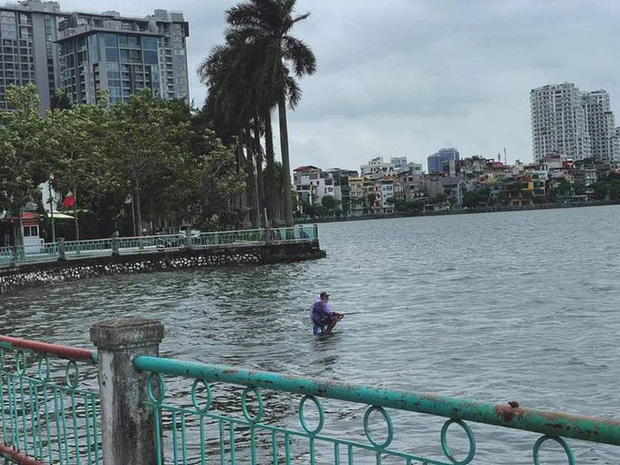 Nếu chưa từng chứng kiến cảnh tượng đứng câu cá trên mặt nước thế này, hẳn bạn sẽ phải ngạc nhiên lắm! Thế nhưng bên cạnh ông chú này, còn có rất nhiều người khác cũng câu cá ngay trên mặt nước như vậy ngay tại khu vực hồ Trúc Bạch, hồ Tây...