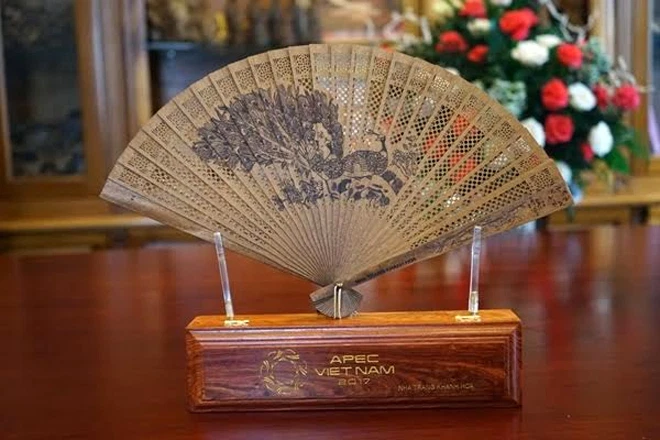 Việt Nam đã tặng 100 chiếc quạt làm từ trầm hương cho các đại biểu cấp cao tham dự Hội nghị cao cấp APEC 2017. Ảnh: CAND