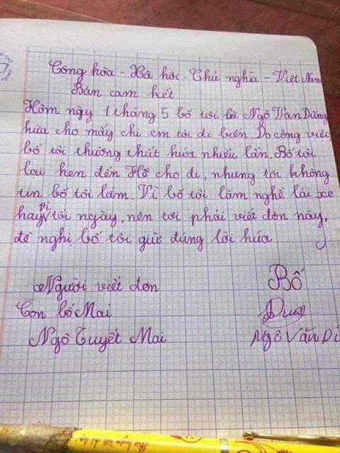 Trước đó, bản cam kết viết tay của một bé gái bắt bố thực hiện lời hứa cho đi chơi cũng đã khiến dân mạng cười ngất.