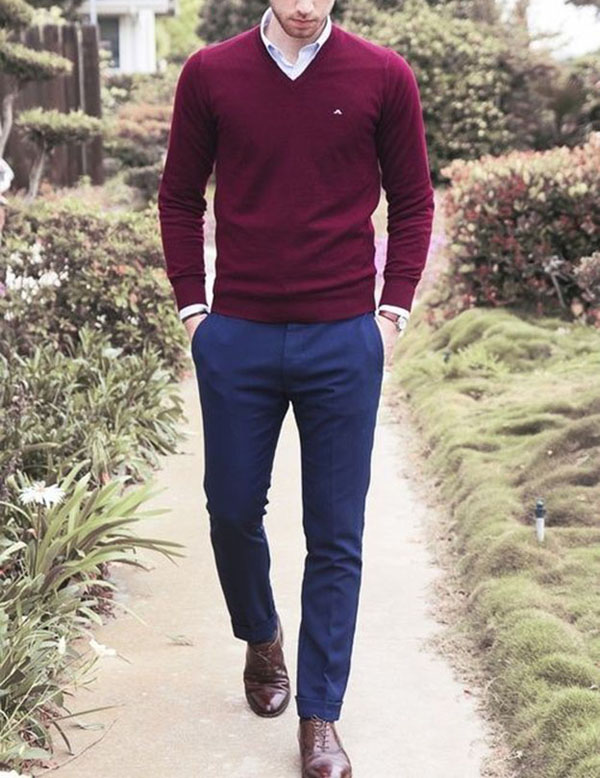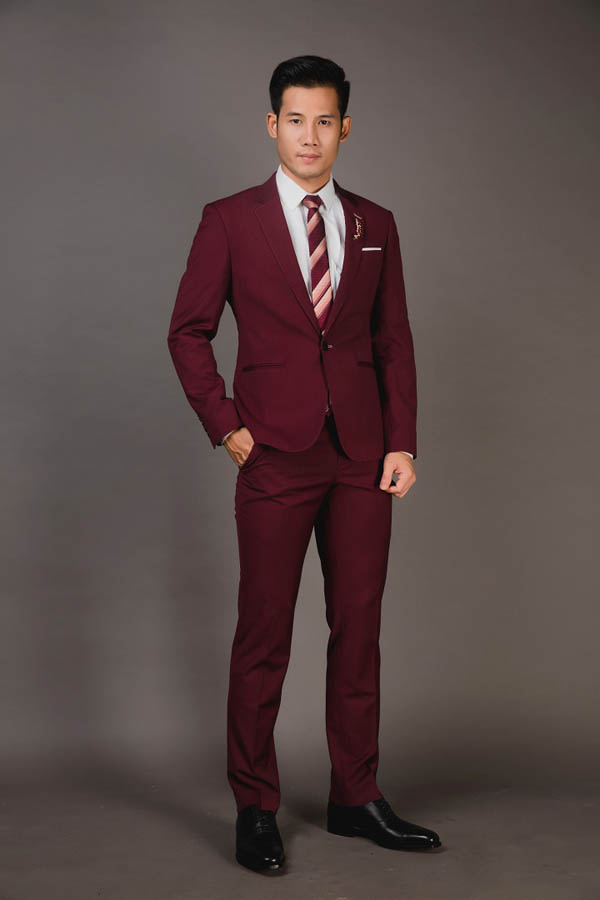 Một trong những món đồ phổ biến nhất của trang phục nam giới là áo blazer. Bạn nên tránh xa áo blazer đỏ tươi và thiên về áo màu đỏ tía và đỏ nâu sẽ sang hơn. Phối với áo sơ mi trắng hoặc áo thun trắng nữa là chàng có set đồ cực lịch lãm.