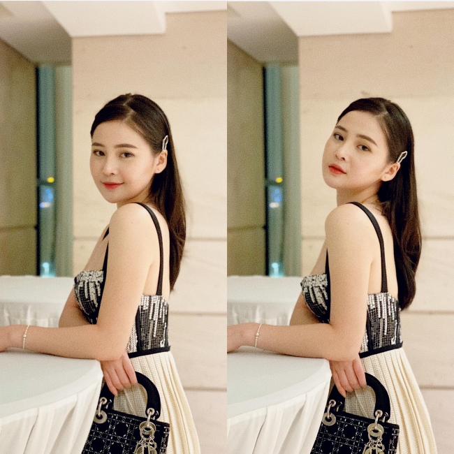 Khi tham gia các bữa tiệc, Thái Thảo Nguyên thường chọn mặc những thiết kế có dáng quây duyên dáng như thế này.