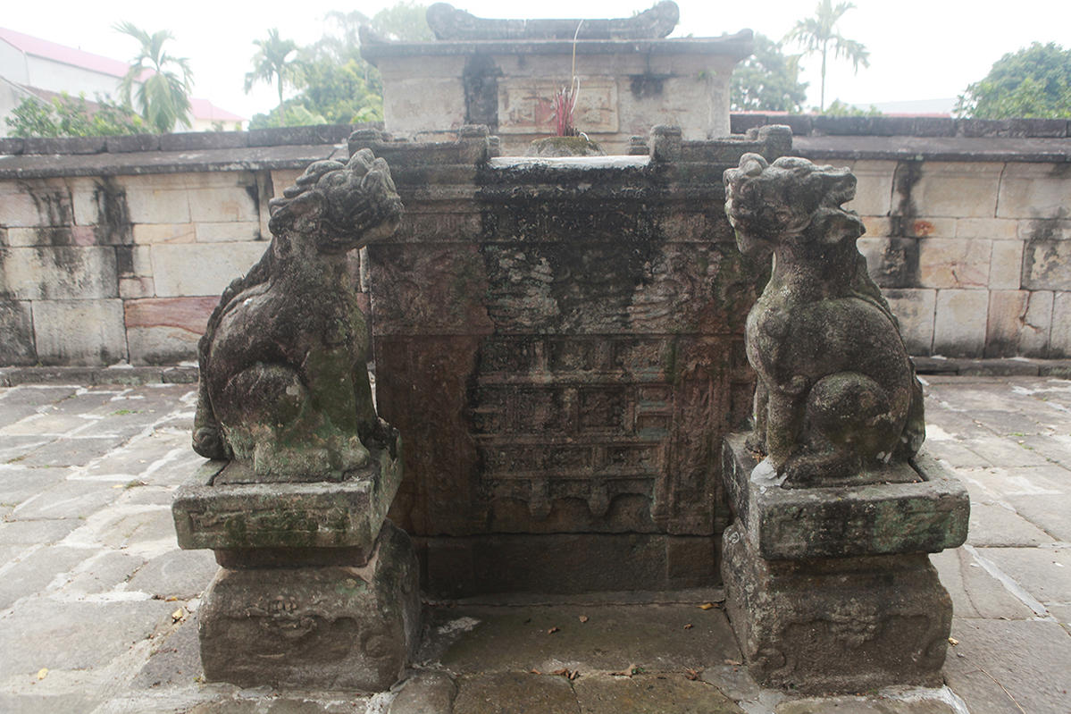 Cạnh hương án có hai con nghê ngồi chầu.