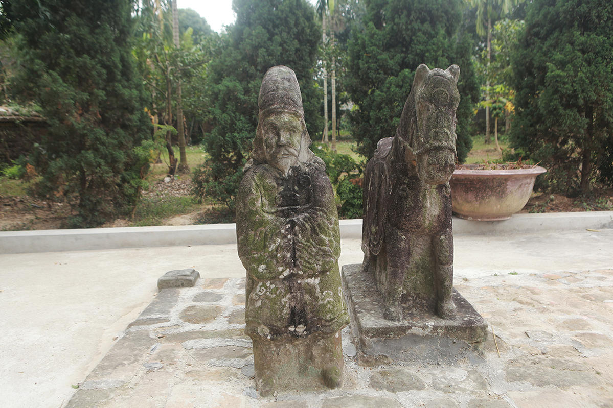 Qua cổng lăng, trên khu đất trước mộ phần, hai bên có 2 dãy tượng đá đứng chầu uy nghiêm. Các tượng đều làm bằng đá muối.