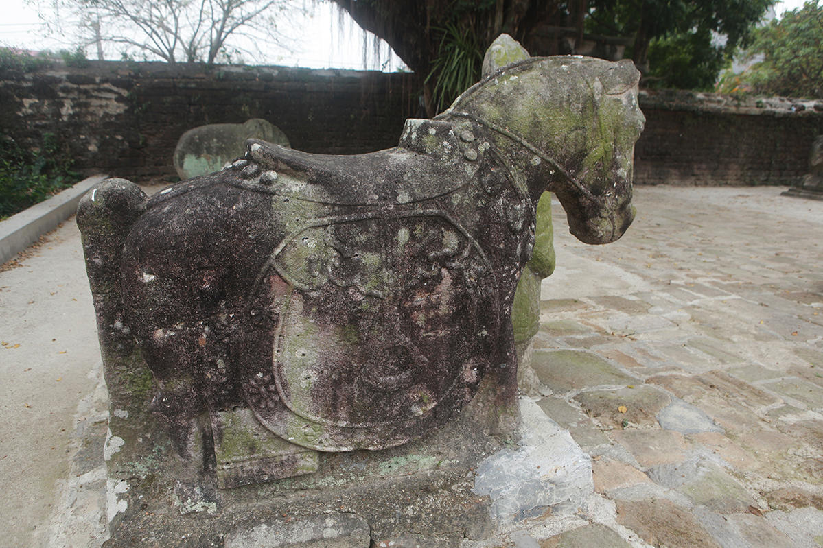Ngựa đá được chạm khắc với đầy đủ chi tiết của ngựa chiến.