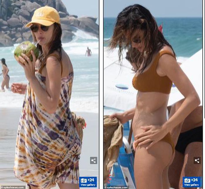 Người đẹp sinh năm 1981 diện bộ áo tắm GAL Floripa - thương hiệu đồ bơi do chính cô đồng sáng lập với bạn thân và chị gái.