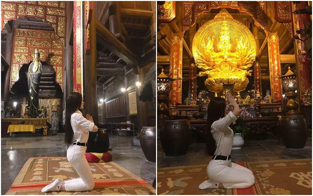 Người mẫu Thư Dung từng bị chỉ trích vì trang phục bó sát và cách tạo dáng chụp hình khi bước vào chốn linh thiêng.