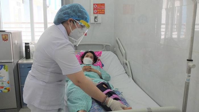 Sau một ngày được chăm sóc tại bệnh viện địa phương, chị T thấy tình trạng đau tăng nặng và được chuyển tuyến lên TPHCM. Sau khi được phẫu thuật kết hợp xương, người bệnh được chuyển đến Bệnh viện Bình Dân để phẫu thuật nối mạch máu và xuất viện sau 2 tuần điều trị.