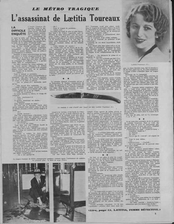 Ngày thứ năm sau khi xảy ra vụ án, phóng viên một tờ báo phát hiện Laetitia có một thân phận khác, thực ra cô chính là một đóa hoa nổi tiếng tại các tụ điểm giải trí ban đêm tại Paris. Ban ngày, cô là quả phụ mẫu mực trong mắt mọi người, nhưng đến ban đêm dùng tên giả, Yolande, đi khắp các tụ điểm ăn chơi nổi tiếng tại Paris.
