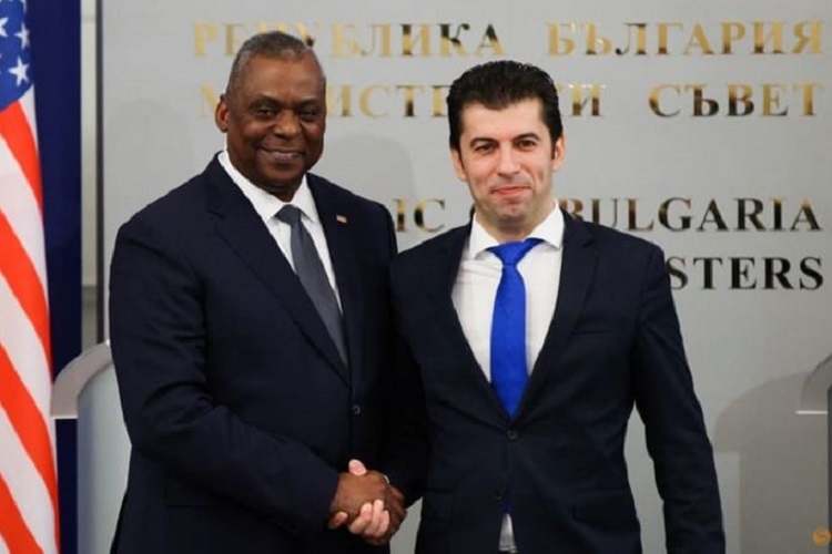 Thủ tướng Bulgaria Kiril Petkov và Bộ trưởng Quốc phòng Mỹ Lloyd Austin hôm 19/3. Ảnh: Reuters