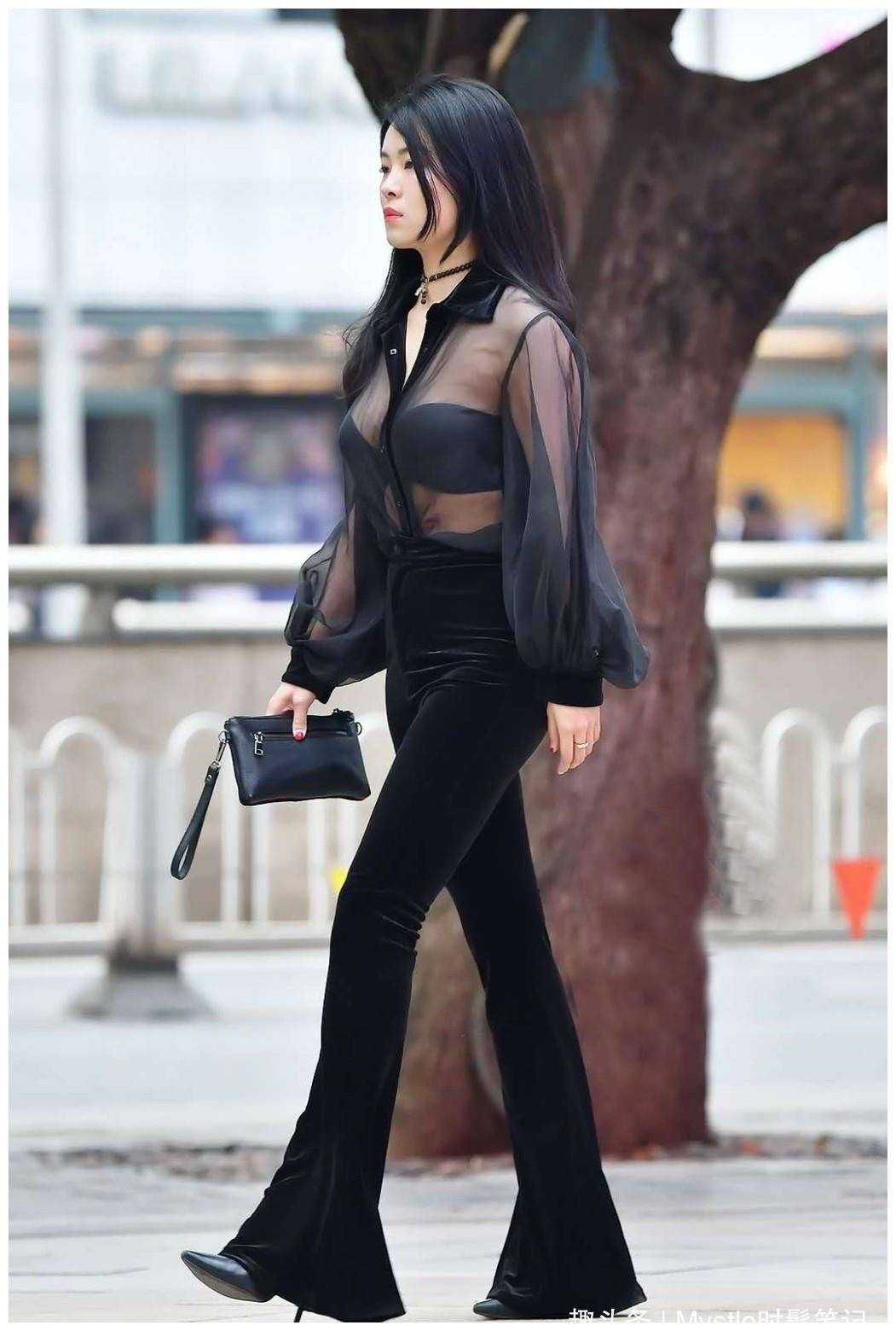 Mới đây, trang Sohu của Trung Quốc có đăng tải bài viết về một người đẹp đường phố với lời khen dành cho lựa chọn trang phục ấn tượng. Cô diện thiết kế quần nhung ống loe cạp cao kết hợp với áo sơ mi xuyên thấu.