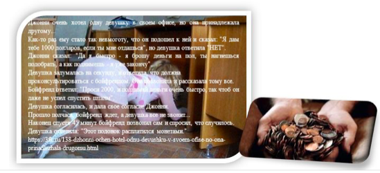 Mãi đến 45 phút sau, gã bạn trai sốt ruột tự mình gọi điện hỏi xem có chuyện gì xảy ra. Cô gái trả lời: "Lão khốn này trả tinh tiền xu"