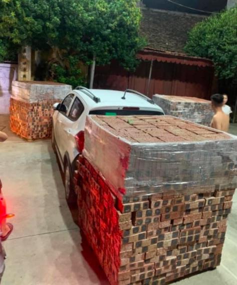 Theo đó, nhiều người dân trong làng đã hợp sức lại, quyết định khiêng chiếc ô tô ra một góc, sau đó xếp 3 chồng gạch ở 3 phía. Chủ xe khi quay lại, muốn tiến, muốn lùi gì cũng không phải chuyện dễ dàng.