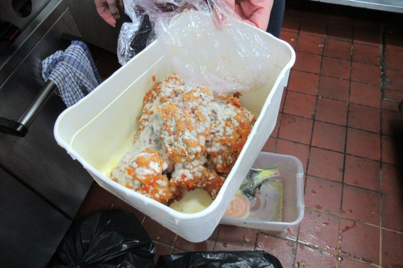 Khi các quan chức bắt đầu lục soát nhà hàng, họ phát hiện một thùng thịt gà bị mốc.