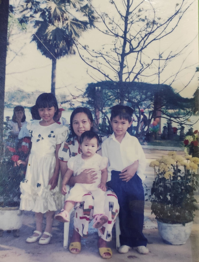 Bà Gắn chụp ảnh lưu niệm cùng các con dịp Tết năm 1997. Ảnh: Nhân vật cung cấp