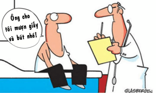 - Bác sĩ có thể cho tôi mượn một cái bút và một tờ giấy được không ạ?