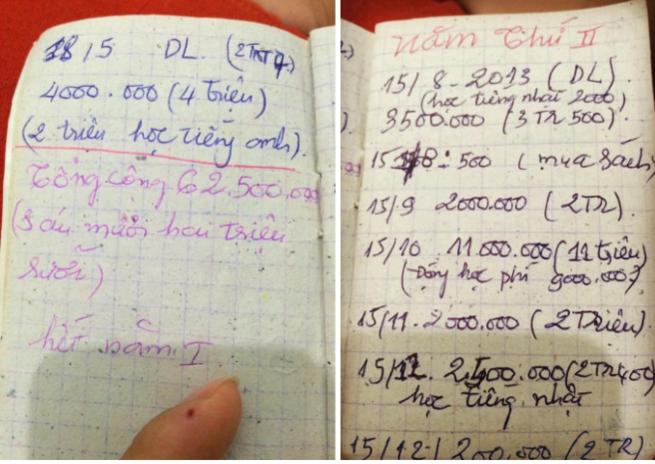 Nhìn lại những dòng chữ nắn nót, cẩn thận ghi chú từng khoản tiền, mốc thời gian, Trân không kìm được nước mắt.