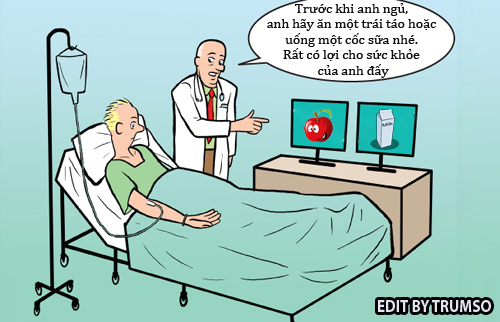- Trước khi ngủ, anh hãy ăn một trái táo hoặc uống một cốc sữa nhé. Rất có lợi cho sức khỏe của anh đấy.