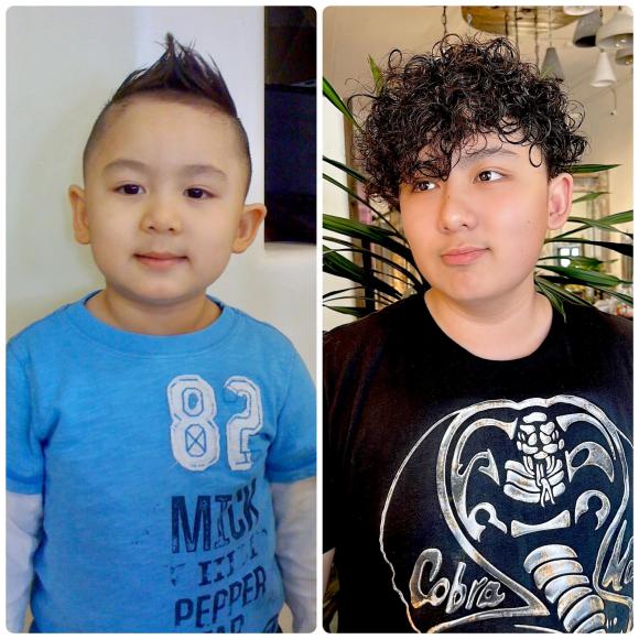 Ngày xưa ở tuổi của Colin, mái tóc của mẹ còn quằn quại hơn nhiều. Cái đầu vừa nhuộm xanh lè vừa dựng đứng lên như mới bị điện giật xong. May mà bà ngoại lúc đó còn ở Việt Nam chưa qua Mỹ, chứ nếu có ở đây chắc cũng chướng tai gai mắt với cái đầu tóc của mẹ lắm hihi. Nhưng đó là mốt của thời bấy giờ, đứa trẻ nào mà không qua những thời nông nổi như vậy. Vì vậy mẹ rất hiểu và tâm lý, để cho Colin tự để tóc theo ý thích của nó, kiểu mà nó cho là đẹp và trendy. Miễn là nó ngoan, biết nghe lời, có xấu tí cũng không sao. Mẹ chỉ mong sao cho cái trend tóc này nó qua càng mau càng tốt".