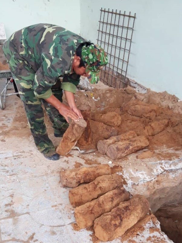 Cuối tháng 3, trong khi đào đất làm móng nhà, người dân xã Tiến Lợi (TP Phan Thiết) phát hiện gần 120 quả đạn nằm dưới hầm, sau đó được thu gom, xử lý.
