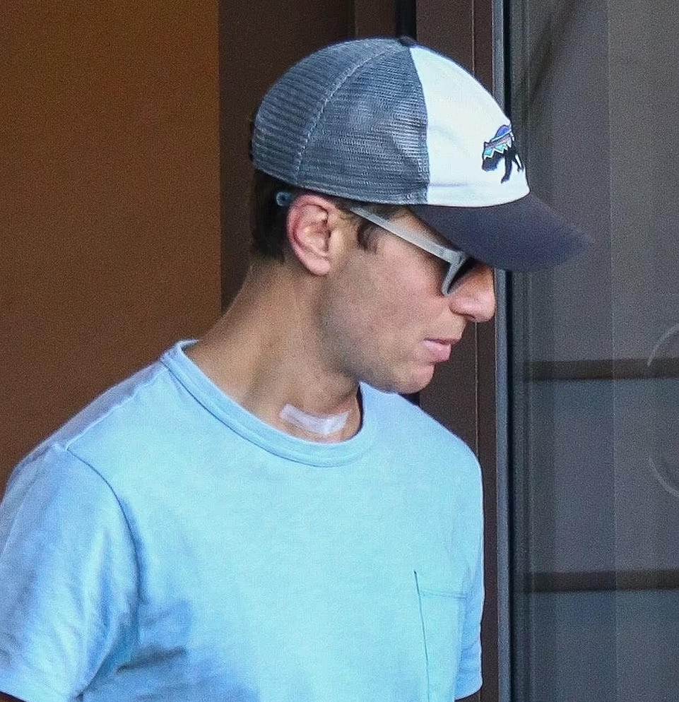 Ra ngoài vào một ngày nắng đẹp, con rể ông Trump chọn mặc áo phông màu xanh và quần đùi màu vàng, đeo kính râm, đội mũ lưỡi trai. Trên cổ anh vẫn còn miếng băng dán, dấu tích của ca phẫu thuật vài ngày trước.