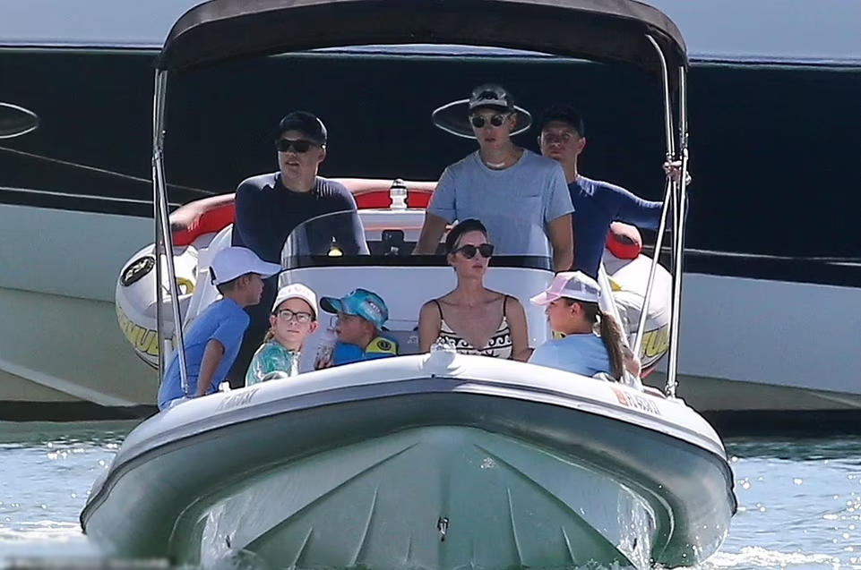 Ái nữ nhà cựu Tổng thổng Mỹ dành một chút thời gian ngồi ở đầu thuyền với các con, Arabella, Joseph và Theodore.