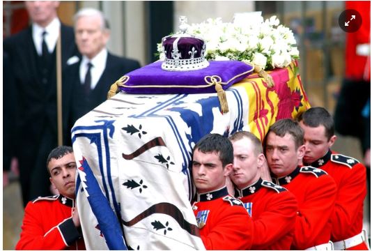 Vương miện gắn viên kim cương Kohinoor được đặt trên linh cữu Nữ hoàng Anh Elizabeth II hôm 9/9. Ảnh: AFP.