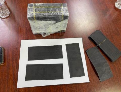 Những tờ giấy đen này có thể nhìn thấy bằng mắt thường là tờ ngoại tệ USD, nhưng không rõ số seri.