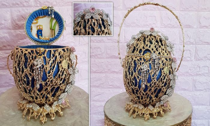 Debbie Wingham trị giá 6,7 triệu USD, được thiết kế cho một khách hàng Mỹ ẩn danh vào năm 2019, người đã tặng nhà thiết kế người Anh một số đồ trang sức và khăn quàng cổ cũ của cô để sử dụng cho việc sáng tạo. Ảnh: Daily Mail.