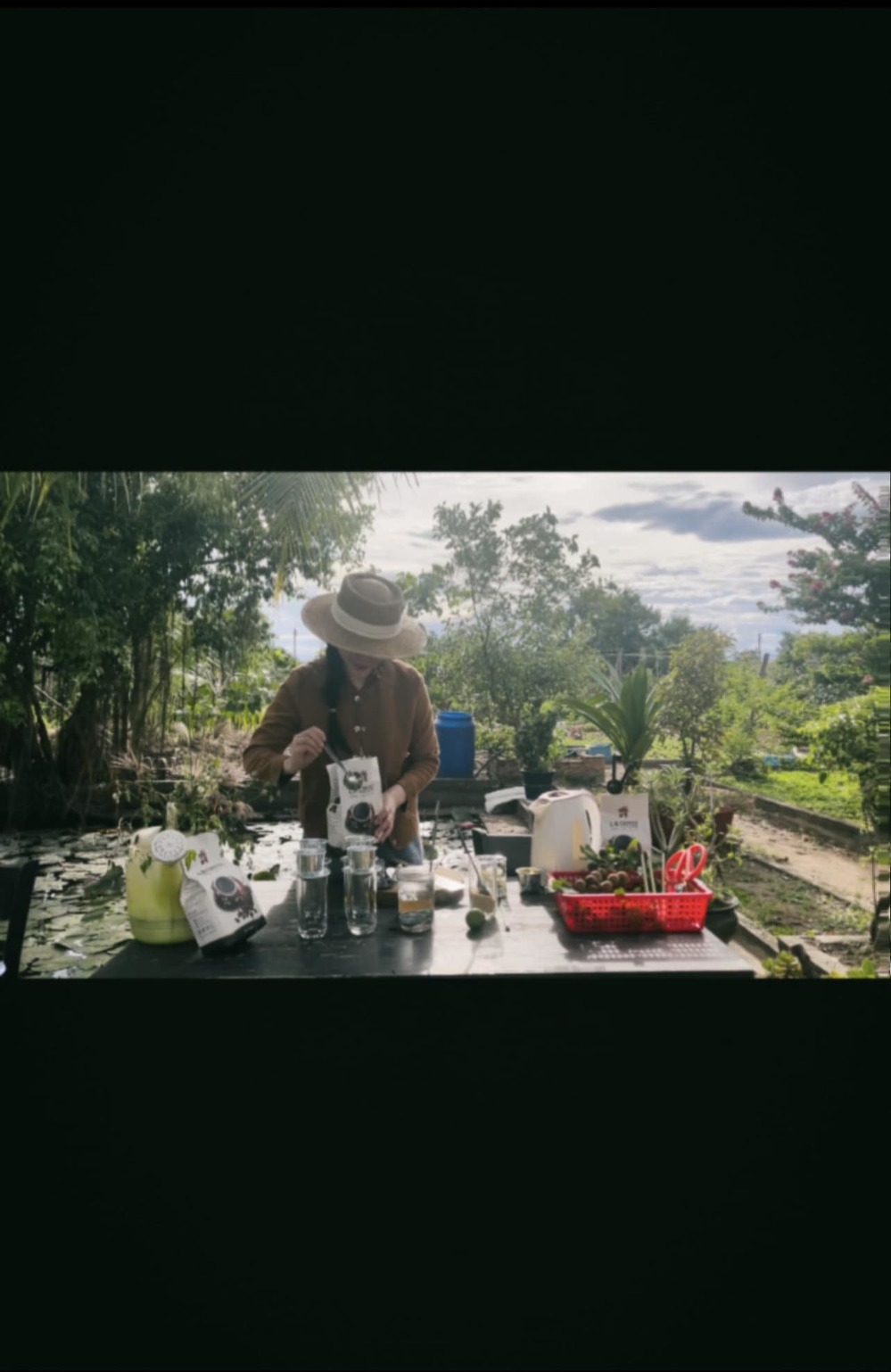 Sau ồn ào đó, V.A vẫn điềm nhiên đăng tải câu chuyện về cà phê cùng bức ảnh đang lao động tại địa điểm mới lên trang cá nhân. Trong ảnh, cô sống tại một vùng quê khá bình yên. Đồng thời, V.A đang pha chế cà phê, xung quanh là loạt vật dụng trông khá chuyên nghiệp.
