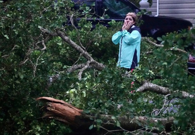 Zuram Rodrigue, một người dân ở Davie, Florida, xem xét thiệt hại quanh nhà ngày 28/9. Ảnh: AP
