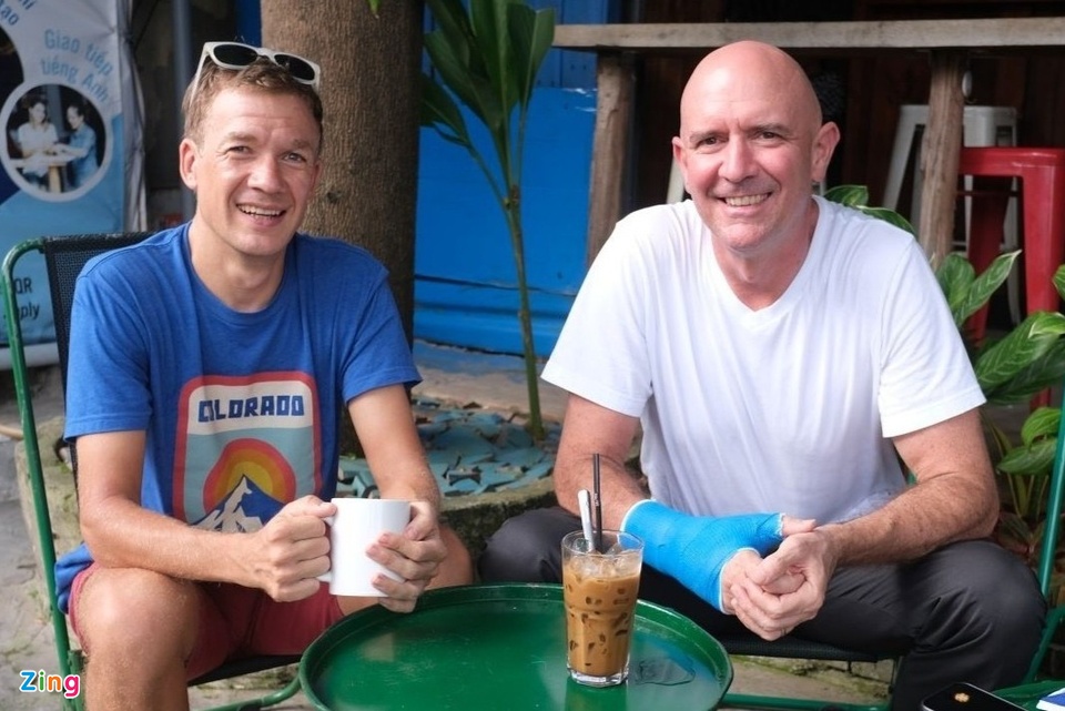 Anh Florian (trái) thích uống cà phê mỗi ngày nhưng không phải kiểu truyền thống của Việt Nam. (Ảnh: Anh Tú)