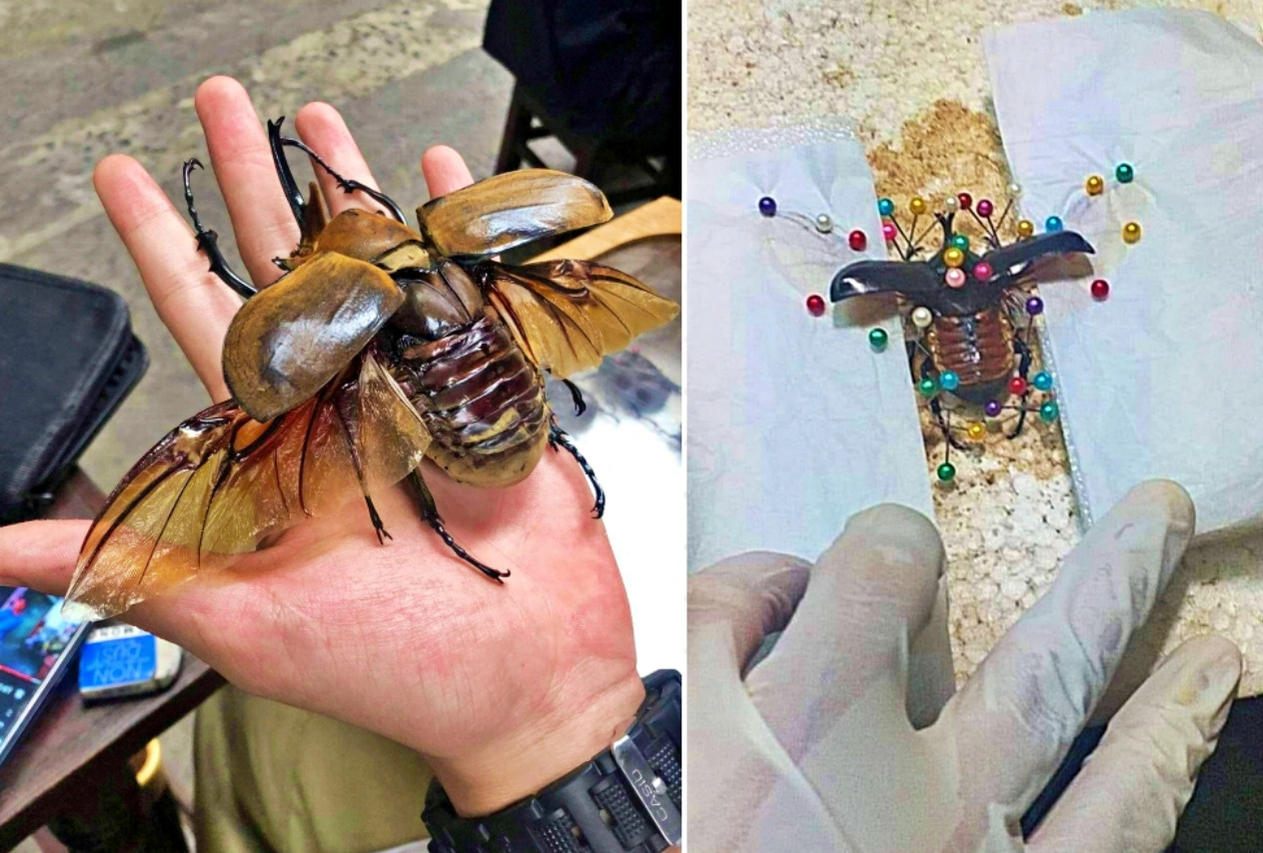 Kiệt thu xác bọ từ người chơi, dân địa phương rồi xử lý bằng hóa chất trước khi làm tiêu bản. (Ảnh: Nhân vật cung cấp)