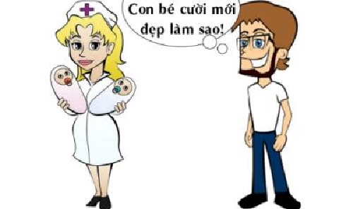 – Ôi trời! Nhìn kìa, con bé đang nhìn tôi cười kìa! Trông mới đáng yêu làm sao! Một ông bố trẻ nhìn qua lớp kính phòng trẻ sơ sinh rồi cảm thán: