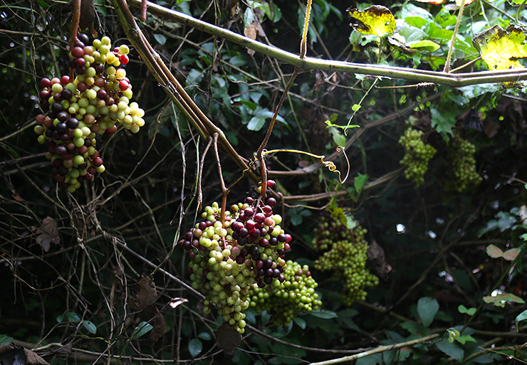 Tháng 8 đến tháng 11 dương lịch hàng năm, từng chùm nho rừng lúc lỉu, chín rực trên cành cây