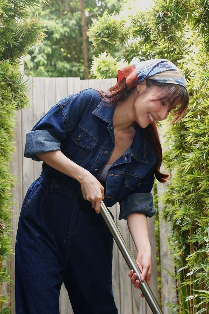 Trong bộ ảnh, Diễm My 9X biến hóa với nhiều phong cách, lúc là người làm vườn vui vẻ, lúc là cô tiểu thư ngây thơ, ngọt ngào.