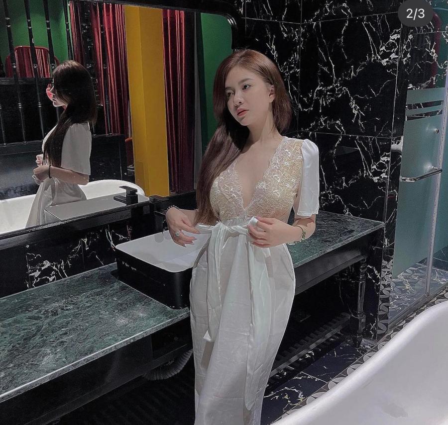 Trang Banana gợi cảm với chiếc váy trắng sử dụng chất liệu ren phần thân trước ấn tượng.