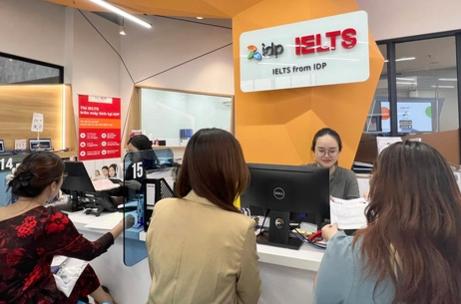 Phụ huynh, học sinh tìm hiểu thi IELTS tại IDP - Ảnh: HOÀNG THI