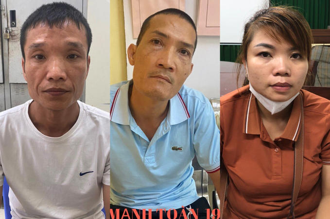 Hưng (áo trắng) cùng vợ chồng Toàn. Ảnh: Công an cung cấp