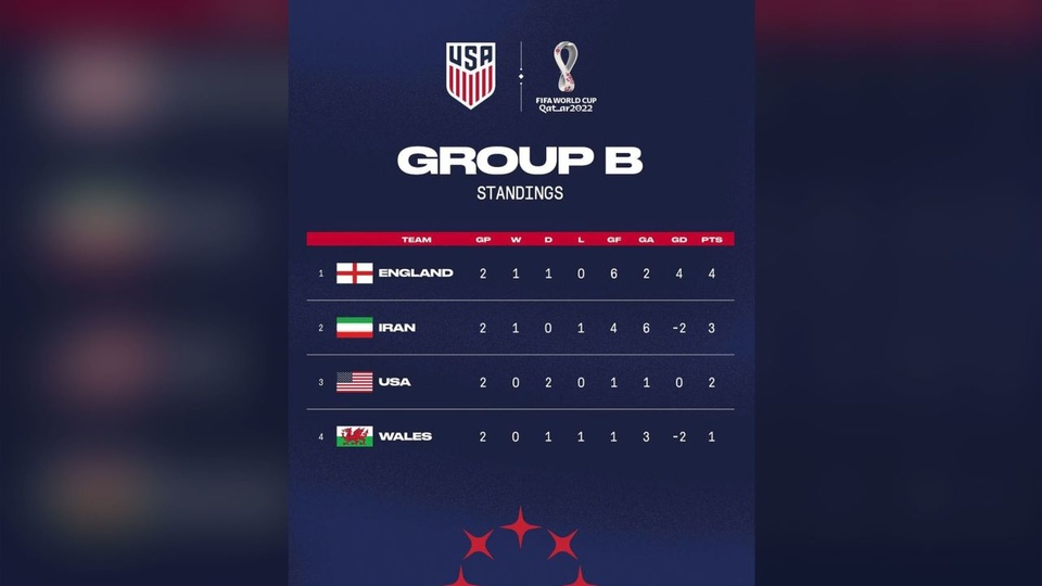 Hôm 27/11, Guardian cho hay Liên đoàn bóng đá Iran kêu gọi khai trừ Mỹ khỏi World Cup 2022, sau khi Liên đoàn bóng đá Mỹ đã thay đổi quốc kỳ Iran. Liên đoàn Mỹ đã hiển thị quốc kỳ Iran không có biểu tượng cộng hòa Hồi giáo trên các tài khoản mạng xã hội.