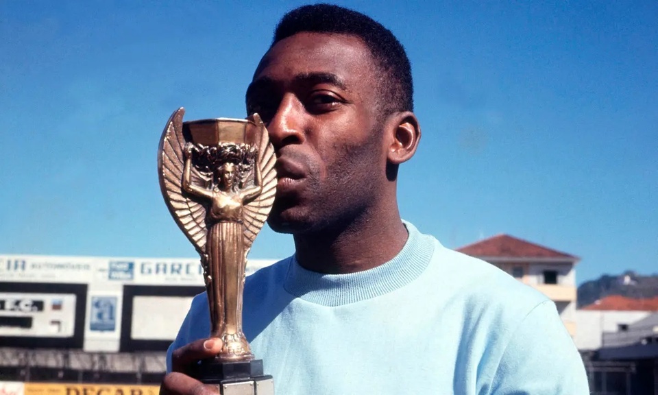 Pele, một trong số ngôi sao của đội tuyển Brazil chiến thắng tại World Cup 1970, hôn chiếc cúp Jules Rimet. Ảnh: Popperfoto.