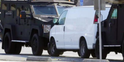 Sau vụ nổ súng ở California, cảnh sát với các phương tiện chiến thuật bao gồm xe rà phá bom đã bao vây một chiếc xe van trắng nhiều giờ trước khi tiến vào và ghi nhận có người đang gục trên bánh lái, có thể đã chết.