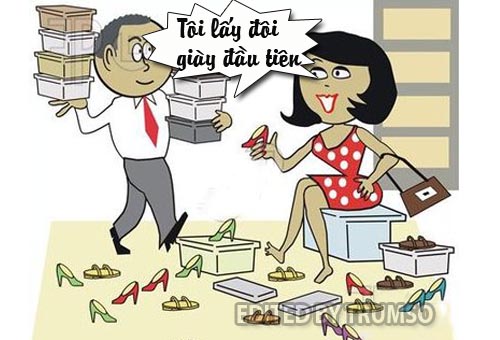 - "Cô ơi, tôi thấy đôi giày đầu tiên hợp nhất, cô đưa lại cho tôi xem".