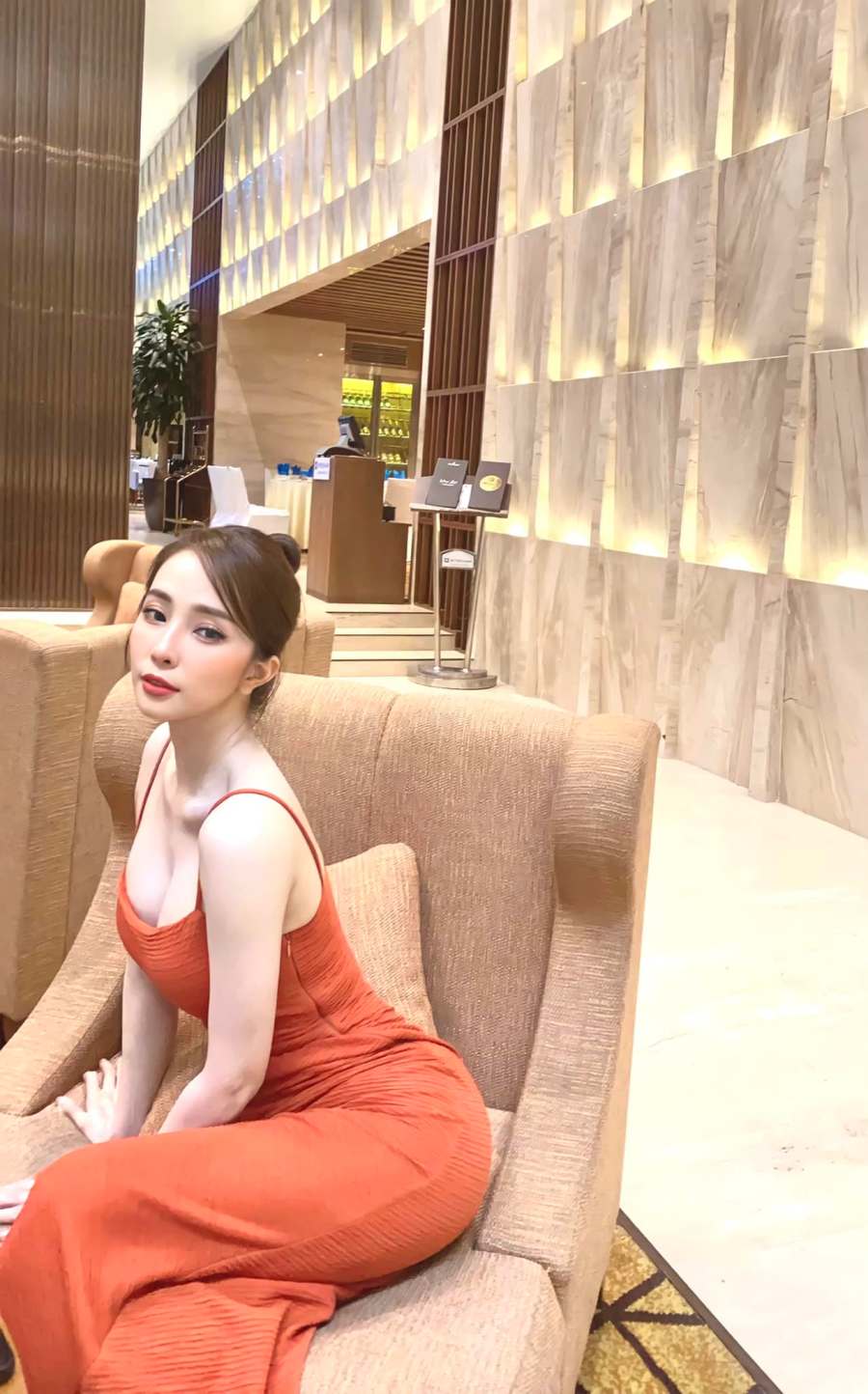Phần cổ áo có thể là xẻ ngực sâu chữ V, nhún bèo, trễ vai hay cup ngực... Dù trang phục đời thường, chụp studio hay những lần Quỳnh Nga đi sự kiện, cô đều thể hiện đẹp mắt với kiểu váy khoe vòng một.